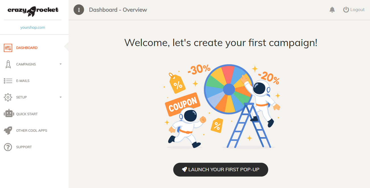 Click on "Launch your first pop-up" from the Dashboard Overview or click on Campaigns > New campaign.