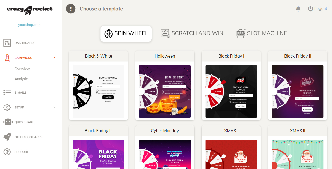We will use the Spin Wheel in this demo. Slot machines and scratch cards can be configured the same way.